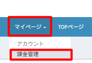 ご利用中のプランを確認するにはツールメニューからマイページ≫課金管理をクリックします。